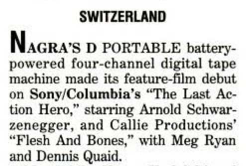 Jeff Wexler Posted February 13, 2017 Report Posted February 13, 2017 Scott said: "The first movie I did with DAT was "The Package" starring Gene Hackman back in 1988 (with a Nagra and Dolby A as backup). We used a couple of modified Sony D-10's along with Panasonic SV-250 recorders." Hey, Scott, I didn't know you did some early experimental work with DAT. Makes perfect sense because you had one of the advantages that we both had in common --- owned a transfer facility! The other thing about all of these early experiments is that even though it was a lot of extra work and equipment we were essentially running two parallel systems with one of the systems (whether you referred to it as the primary or the backup) fitting into the proven and accepted workflow. None of us wanted to make any production the guinea pig for our experimentation as we pursued new ways of doing things in production. Quote